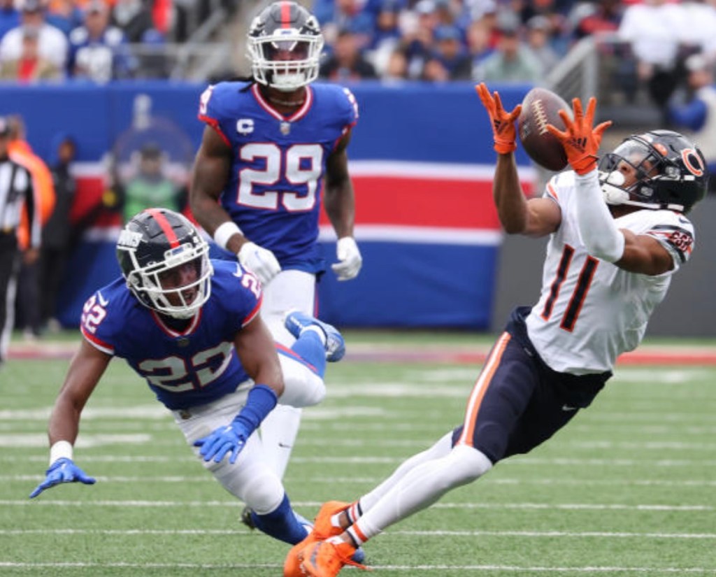 Leading 20-12, the Giants salted the game away when Gary Brightwell recovered a muffed punt by Velus Jones Jr. of the Bears at the Chicago 37-yard line with 2:01 to play. The Giants hung on despite Graham Gano missing a 37-yard field goal with :17 left.