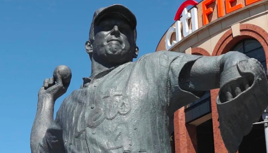Following an introduction from longtime Mets radio announcer Howie Rose and speeches by owner Steve Cohen and former slugger Mike Piazza, the blue curtain was pulled away to reveal a striking monument that stands 10 feet tall and 13 1/2 feet long. It depicts Seaver in the middle of his classic drop-and-drive delivery, baseball in his right hand.