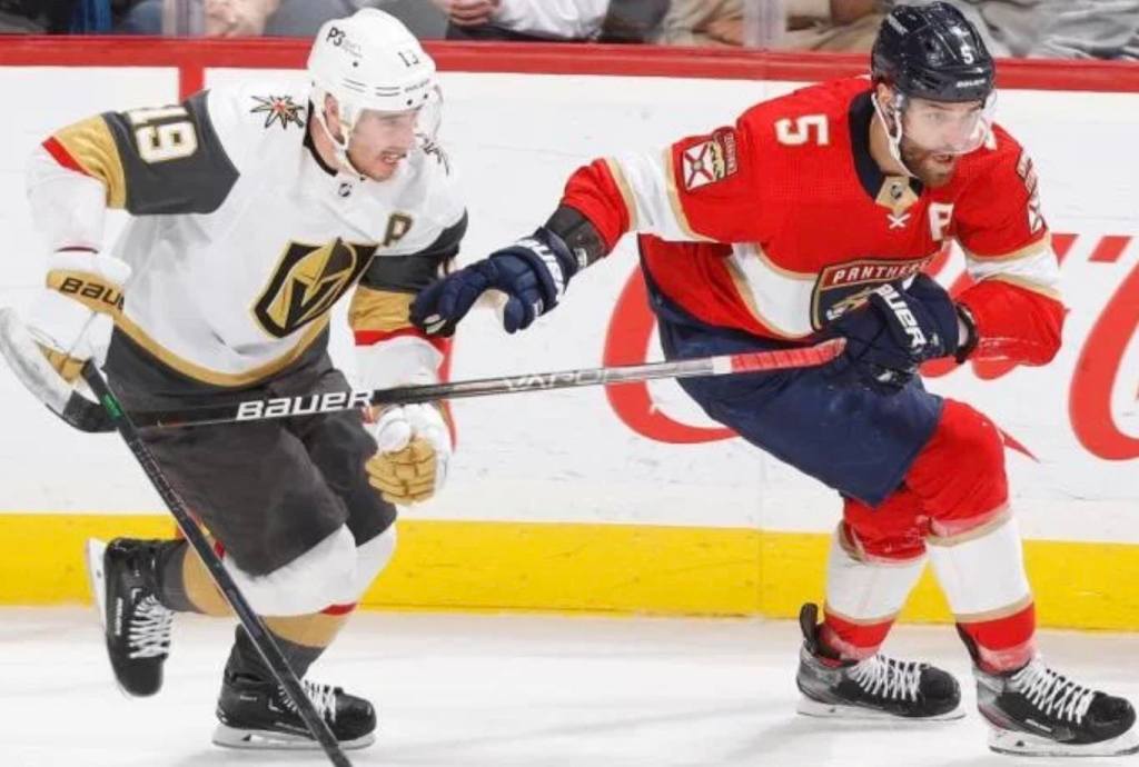 Zach Whitecloud and Mark Stone scored less than seven minutes apart in the third period, Hill made 33 saves that included a highlight-reel stick save with the game tied early in the second period, and the Golden Knights defeated the Florida Panthers 5-2 in Game 1 of the Stanley Cup Final at T-Mobile Arena on Saturday.