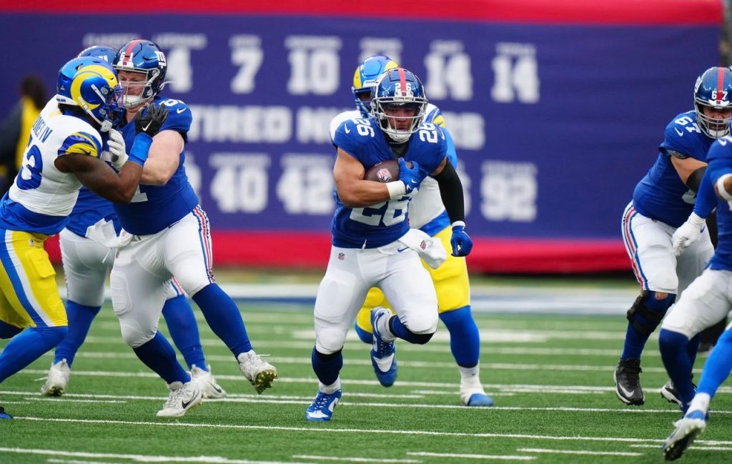 Saquon Barkley, who moved into fourth place on the Giants’ all-time rushing list last week, ran 12 times for 39 yards on Sunday.