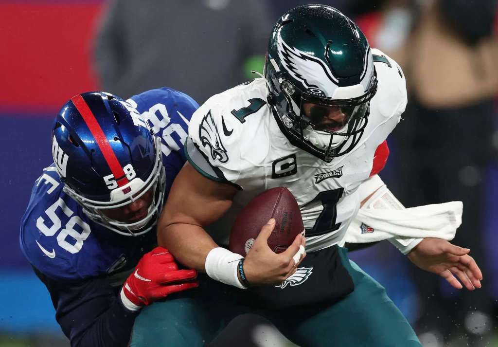 The Eagles — subsequently led by backup quarterback Marcus Mariota — finally got on the board with a field goal late in the third quarter, then cut the lead to 24-10 on a Mariota to Quez Watkins touchdown pass with 10 minutes remaining, but a Mason Crosby field goal on New York’s next drive with under four minutes to go made the game a three-possession gap once again to effectively ice it.