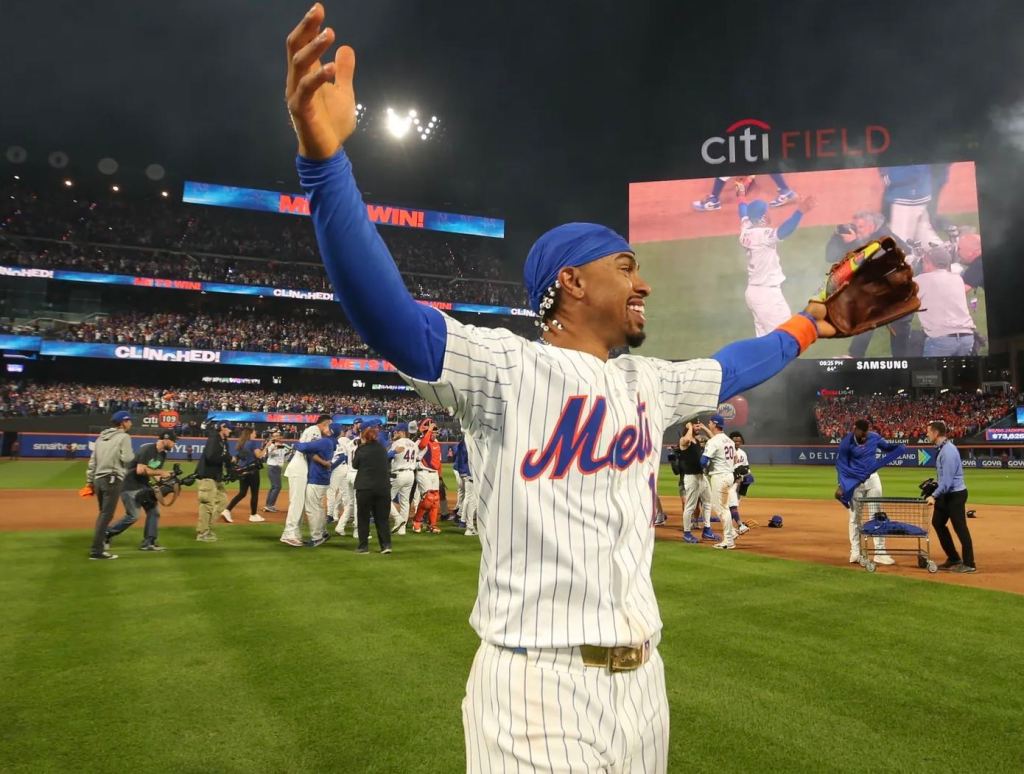 Lindor went ahead 2-1 in the count before launching a 99-mph fastball over the fence in right-center to start the countdown party. Nine outs later, the Mets celebrated the first home clincher in Citi Field’s 16 seasons of existence.