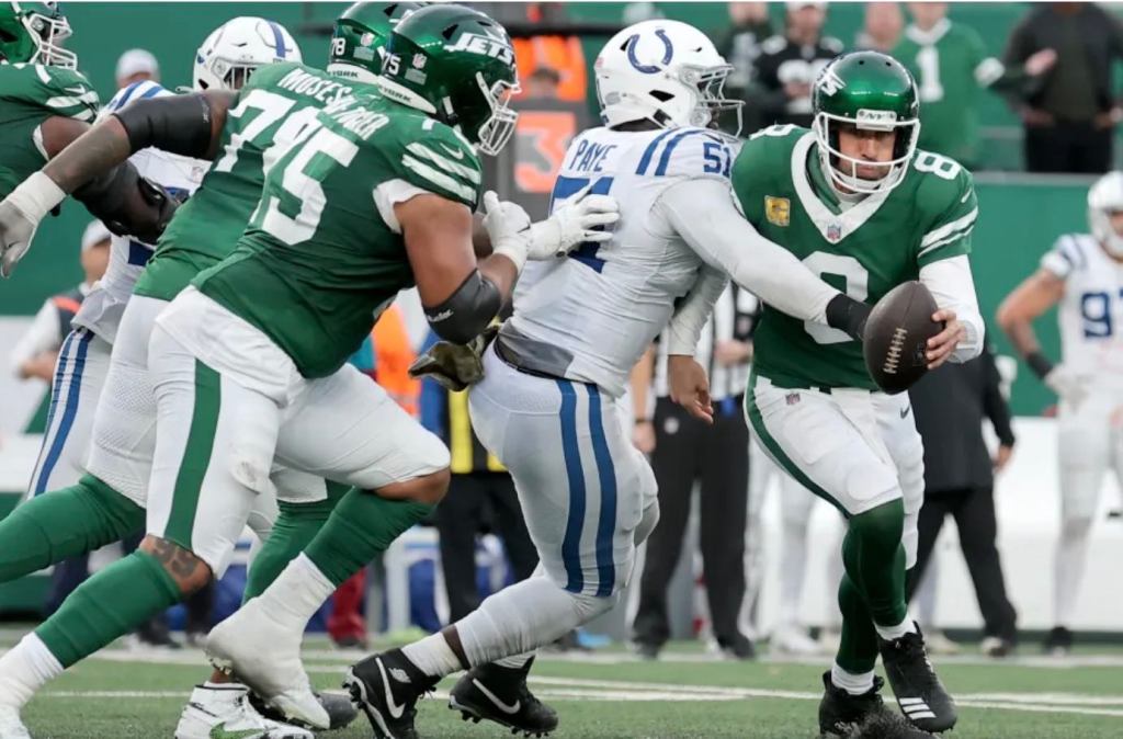 Rodgers was sacked and fumbled on the first play, but the Jets recovered. After Breece Hall had an 11-yard catch and a delay-of-game penalty was called on the Colts’ E.J. Speed, Rodgers was sacked again — sealing the win for the Colts (5-6), who snapped a three-game skid.
