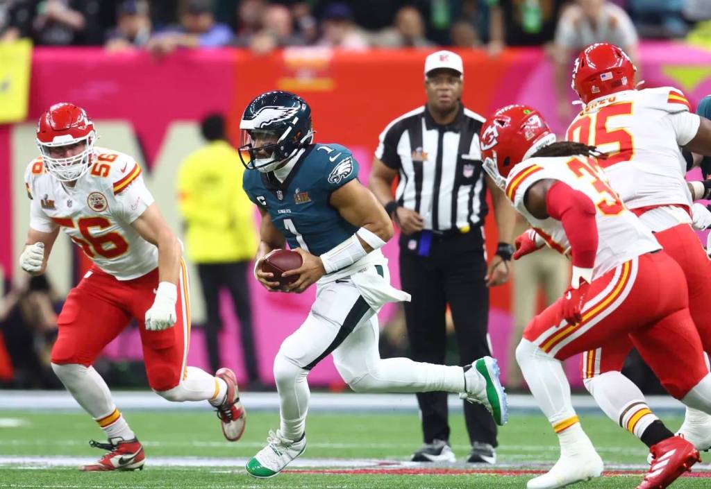A brilliant night from the Eagles’ defense and an efficient, poised night from Hurts headlined Philadelphia’s second Super Bowl title in franchise history. The Eagles held the Chiefs to 225 total yards and forced three turnovers, including a second-quarter Cooper DeJean interception that he returned for a touchdown.