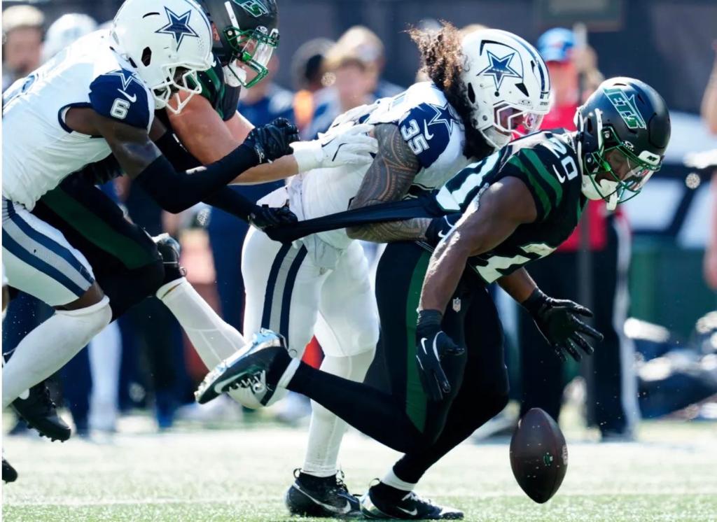 The Jets offense was held to six points until the fourth quarter, the offensive line gave up five sacks to a Cowboys defense that, up until then, had no pass rush through the opening month. 10 penalties crippled the Jets.